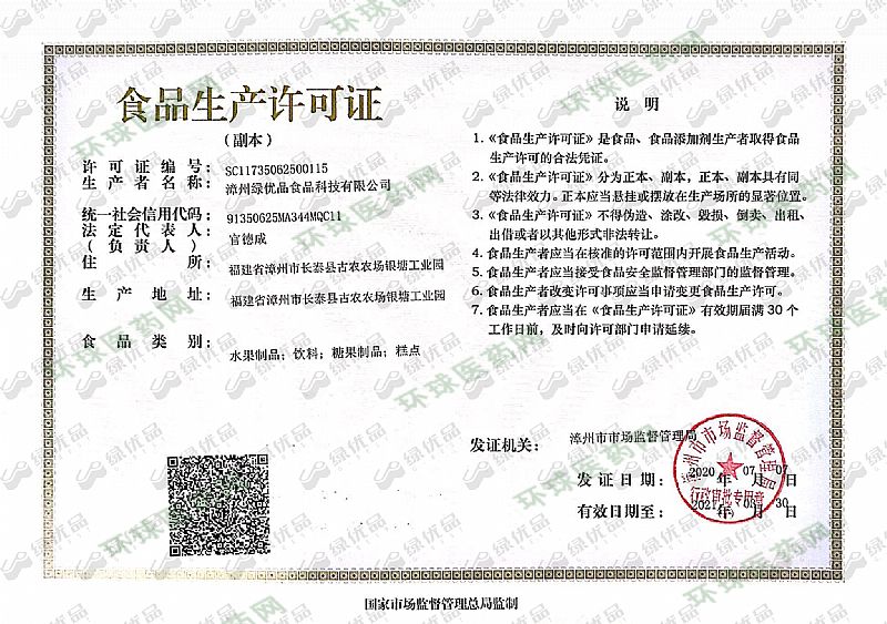 生產(chǎn)企業(yè): 漳州綠優(yōu)品食品科技有限公司