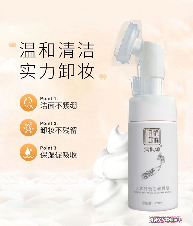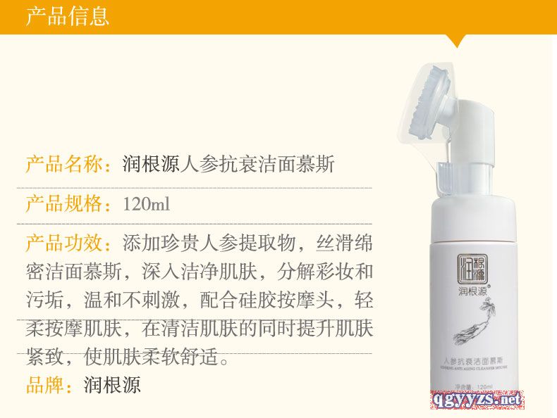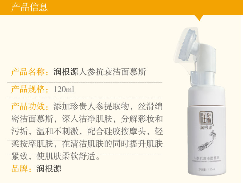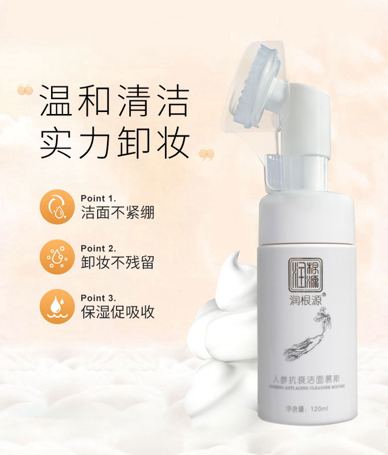 | 產(chǎn)品名稱 | 潤根源人參抗衰潔面慕斯 |