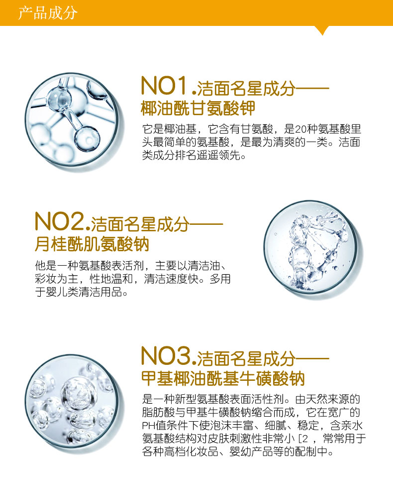 | 產(chǎn)品賣點(diǎn) | 潔面慕斯透明水狀質(zhì)地的清潔潔膚泡沫,按壓后會產(chǎn)生泡沫,不僅能快速洗去臉部彩妝及不潔物,并且能使肌膚變得更透明有光澤。能幫助老角質(zhì)的剝落卻完全不傷肌膚。 |