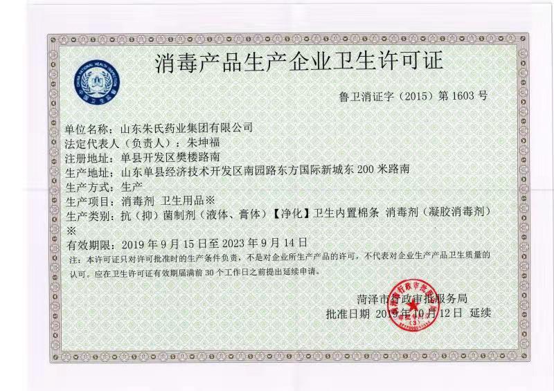 批準(zhǔn)文號(hào): 魯衛(wèi)消證字2015第1603號(hào)