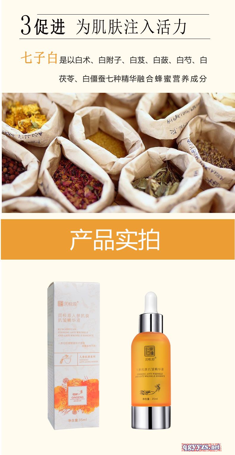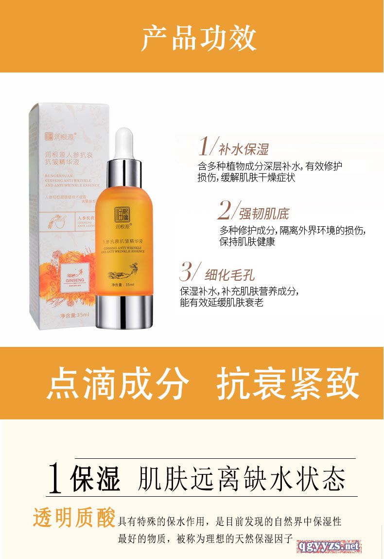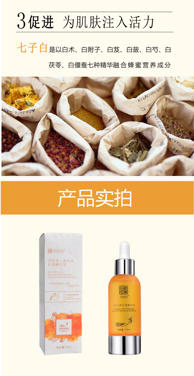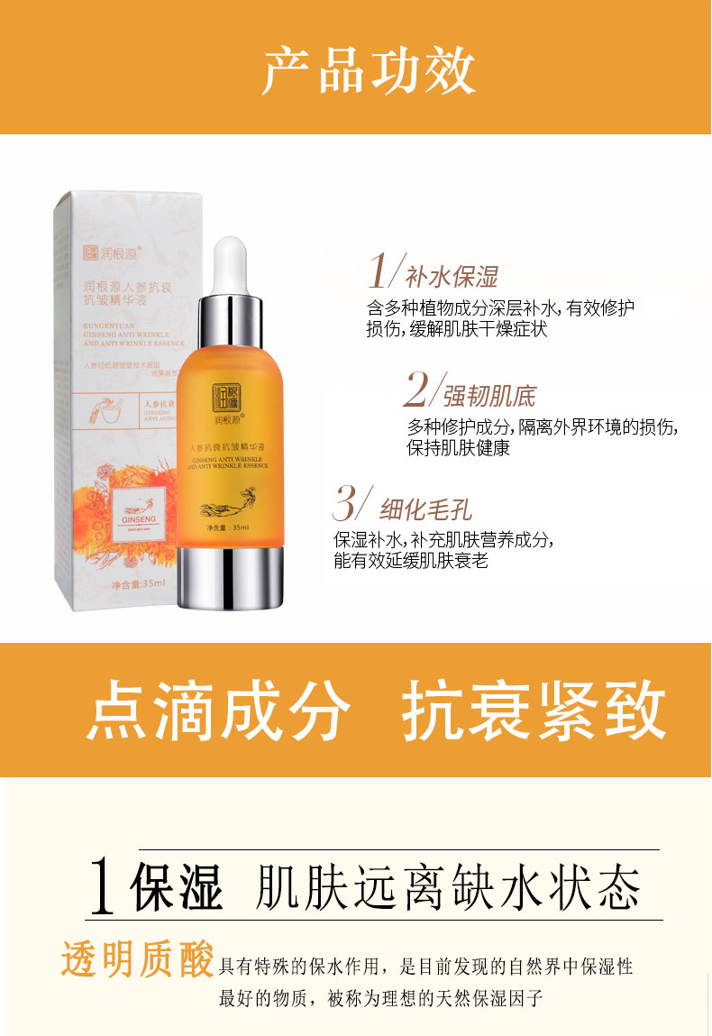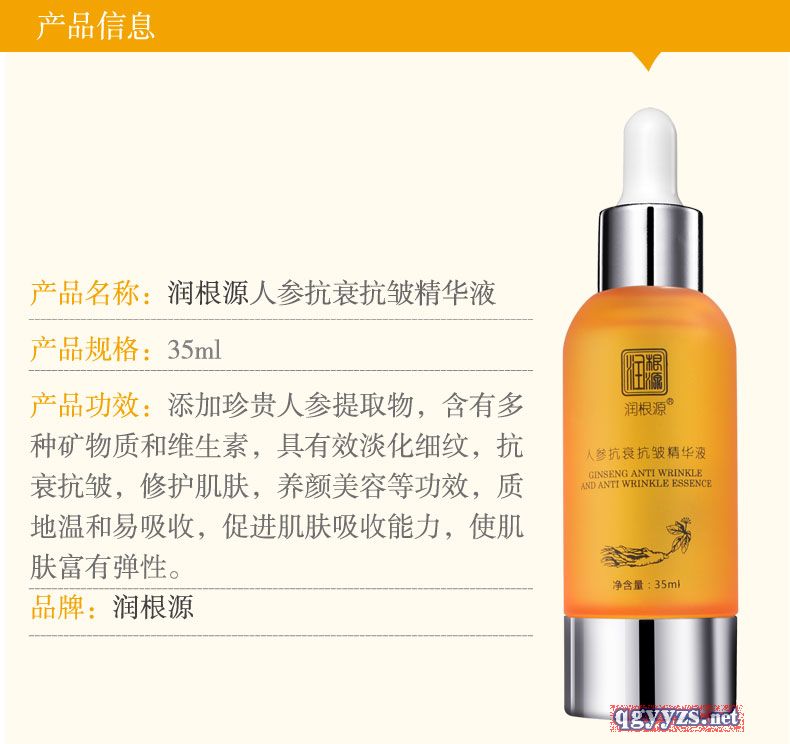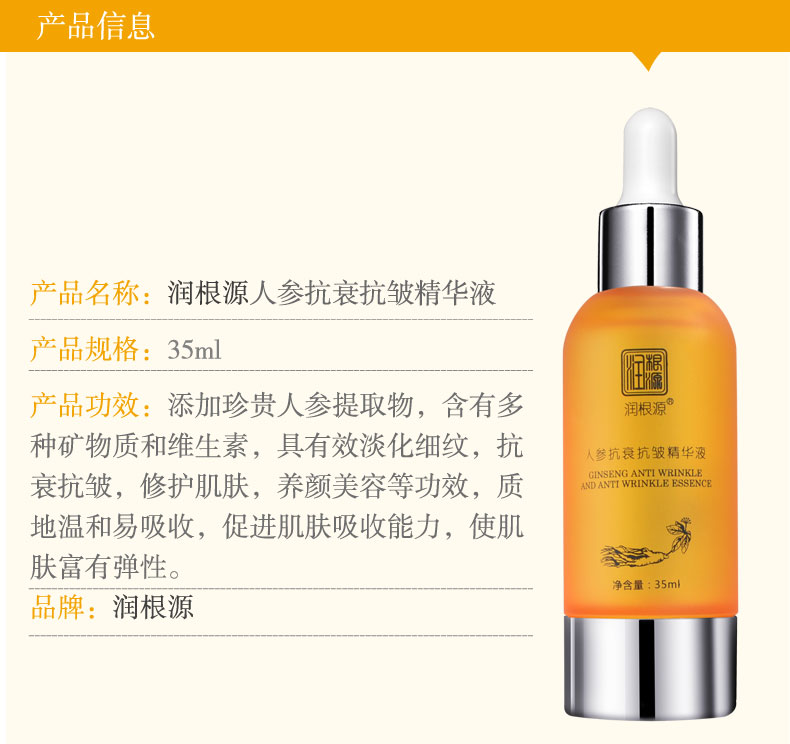 | 產(chǎn)品名稱 | 潤根源人參抗衰抗皺精華液 |