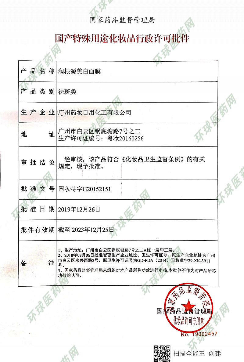 | 產(chǎn)品名稱 | 潤根源美白面膜 |