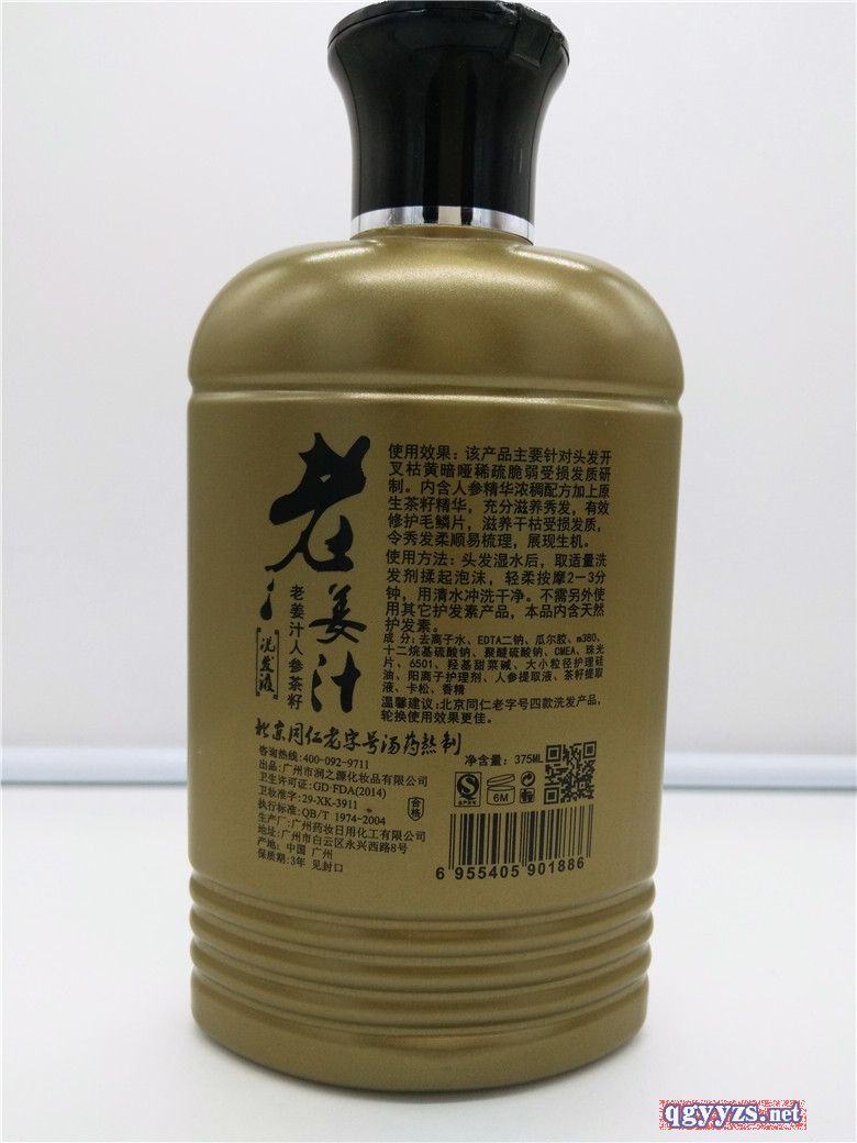 產(chǎn)品名稱: 潤根源老姜汁人參茶籽洗發(fā)液