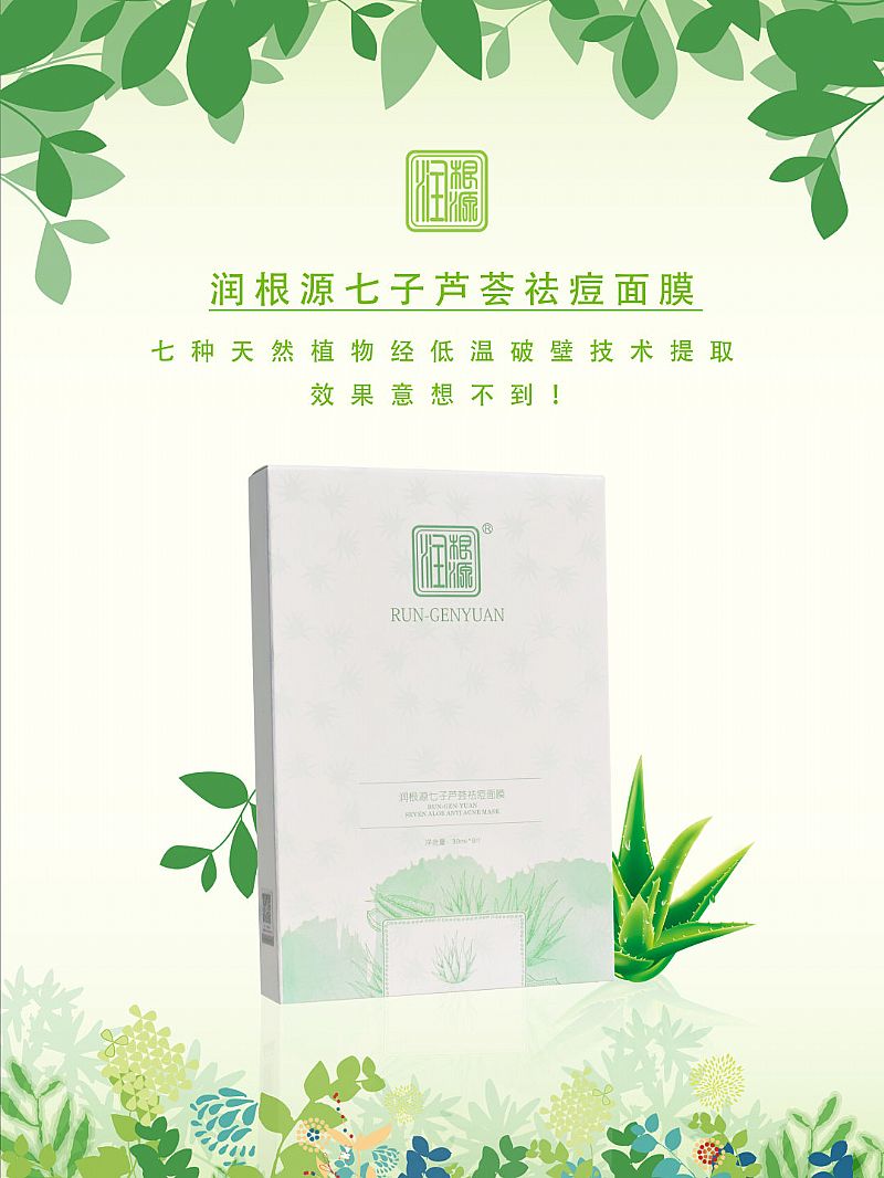| 產(chǎn)品名稱 | 潤根源七子蘆薈祛痘面膜 |