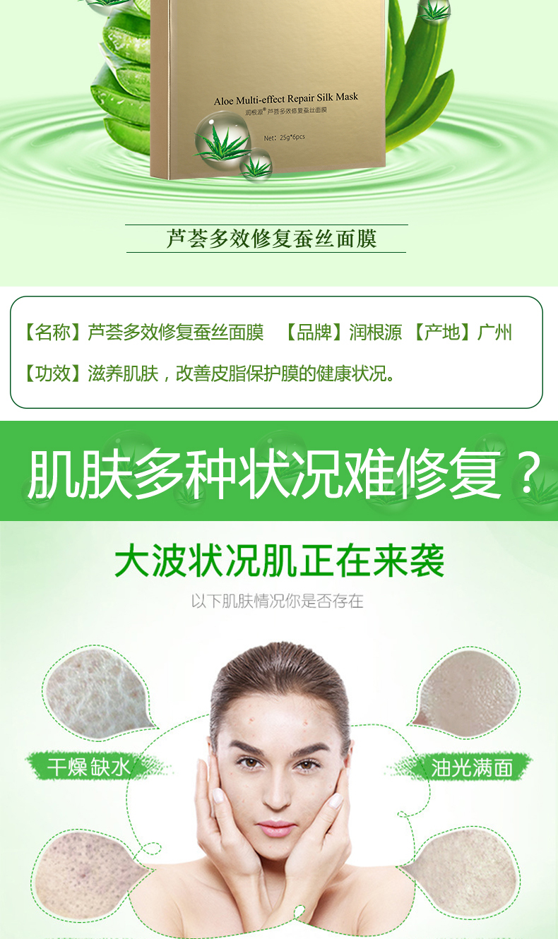 產(chǎn)品名稱: 潤(rùn)根源蘆薈多效修護(hù)蠶絲面膜