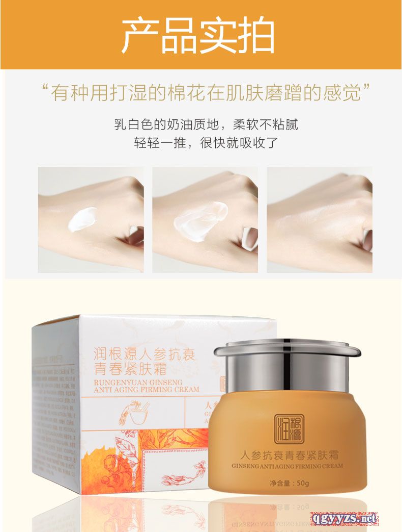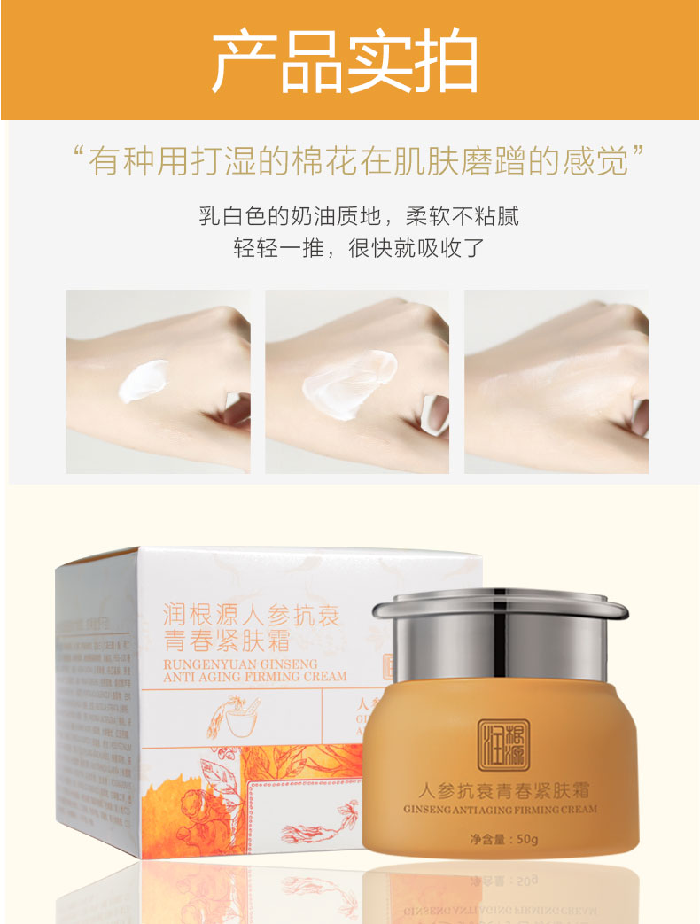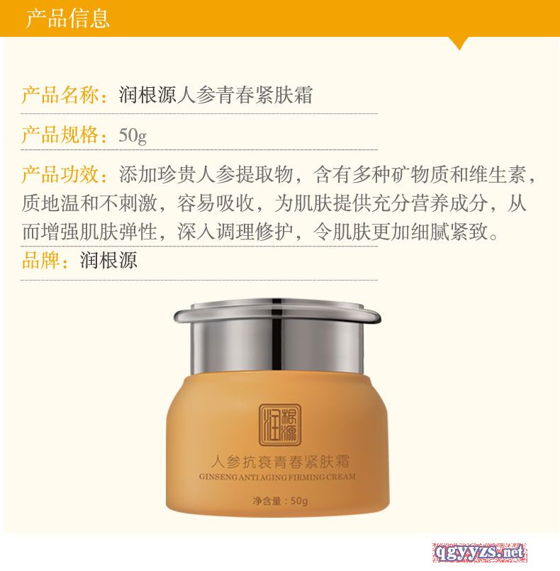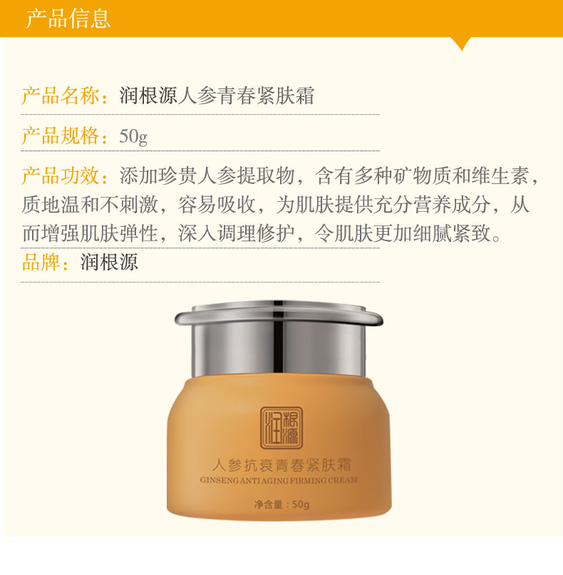 | 產(chǎn)品名稱 | 潤(rùn)根源人參抗衰青春緊膚霜 |