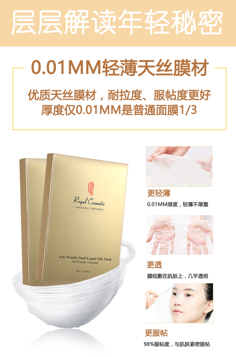 產(chǎn)品名稱: 潤根源抗皺蝸牛液蠶絲面膜