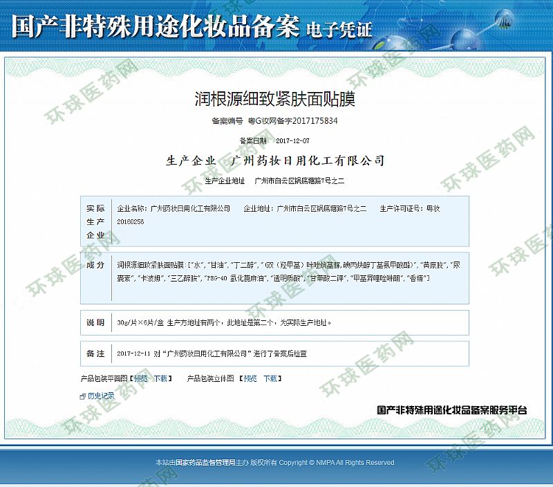 批準(zhǔn)文號(hào): 粵G妝網(wǎng)備字2017175834 【驗(yàn)證真?zhèn)?/a>】