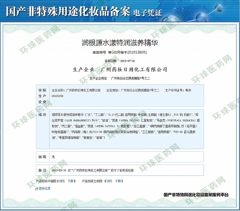 批準(zhǔn)文號(hào): 粵G妝網(wǎng)備字2019138691 【驗(yàn)證真?zhèn)?/a>】