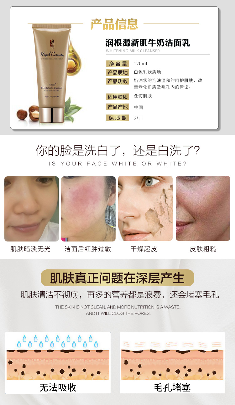 產品名稱: 廠家直銷--潤根源新肌牛奶潔面乳