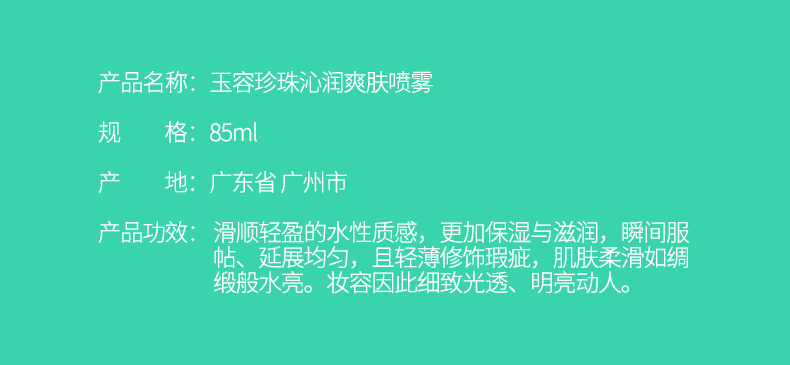 | 產(chǎn)品名稱 | 潤根源玉容珍珠沁潤爽膚噴 |