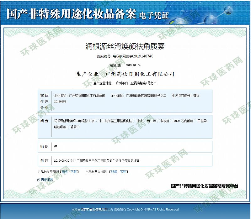 批準(zhǔn)文號(hào): 粵G妝網(wǎng)備字2019140740 【驗(yàn)證真?zhèn)?/a>】
