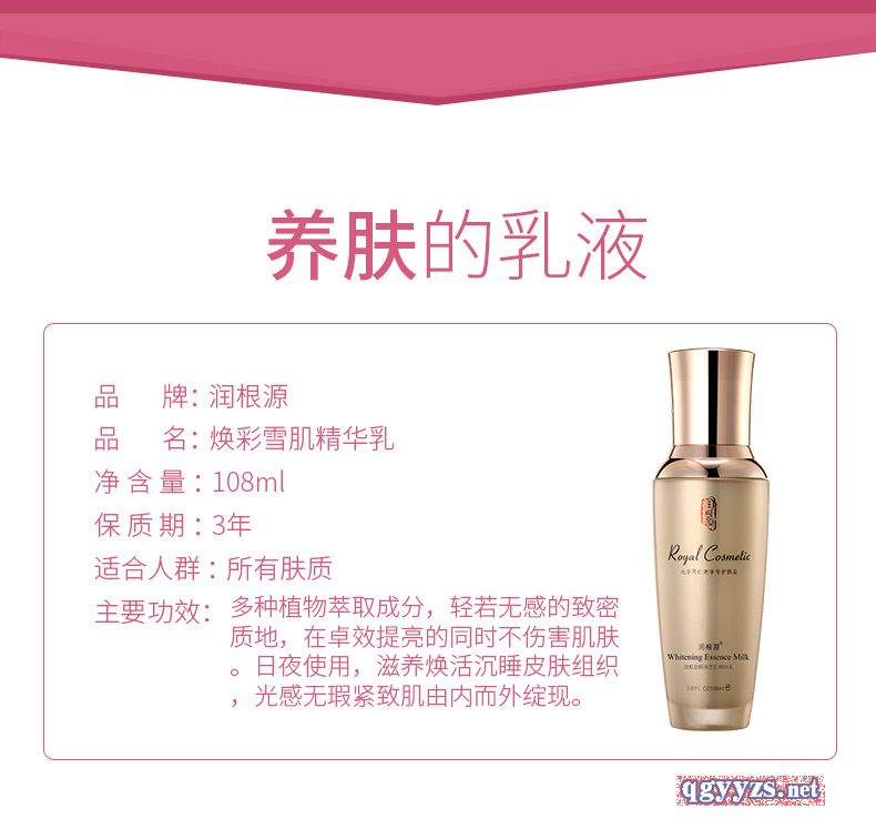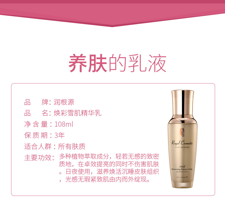 | 產(chǎn)品名稱 | 潤根源煥采雪肌精華乳 |
