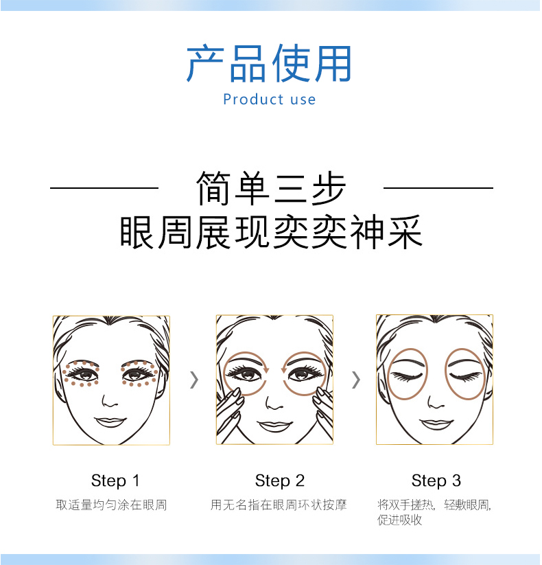 | 使用方法 | 輕壓泵頭取適量精華,以指腹輕輕涂抹于包括上眼瞼的整個(gè)部位,以畫(huà)圓方式從內(nèi)眼角平滑撫至眼睛下方,然后再回到上眼瞼 |