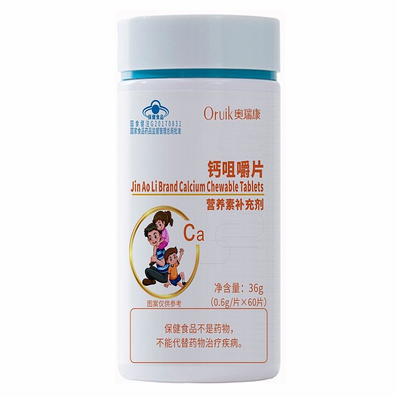 | 補充說明 | 品名:深圳市奧瑞康鈣咀嚼片 原料:碳酸鈣、檸檬酸鈣、酪蛋白磷酸肽 【輔料】乳糖、D-甘露糖醇、蘋果酸、羧甲基纖維素鈉、甜橙香精、硬脂酸鎂、三氯蔗糖、莧菜紅 【功效成分及含量】每片含:鈣110mg 【適宜人群】需要補充鈣的4-17歲人群、成人、孕婦、乳母 【不適宜人群】3歲以下人群 【保健功能】補充鈣 【食用量及食用方法】每日2次,每次2片,嚼食 【規(guī)格】0.6g/片 【貯藏方法】密封,置陰涼干燥處 【保質(zhì)期】24個月 |