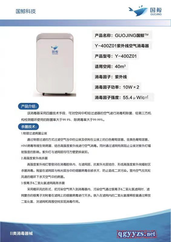 | 產(chǎn)品名稱 | Y-400Z01紫外線空氣消毒器 |