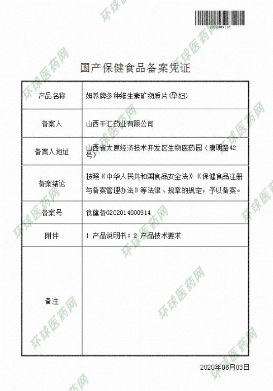 生產(chǎn)企業(yè): 山西千匯藥業(yè)有限公司