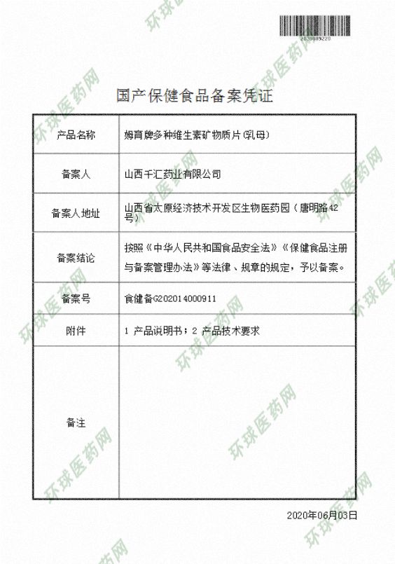 | 產(chǎn)品名稱 | 姆育牌多種維生素看我照片(乳母) |