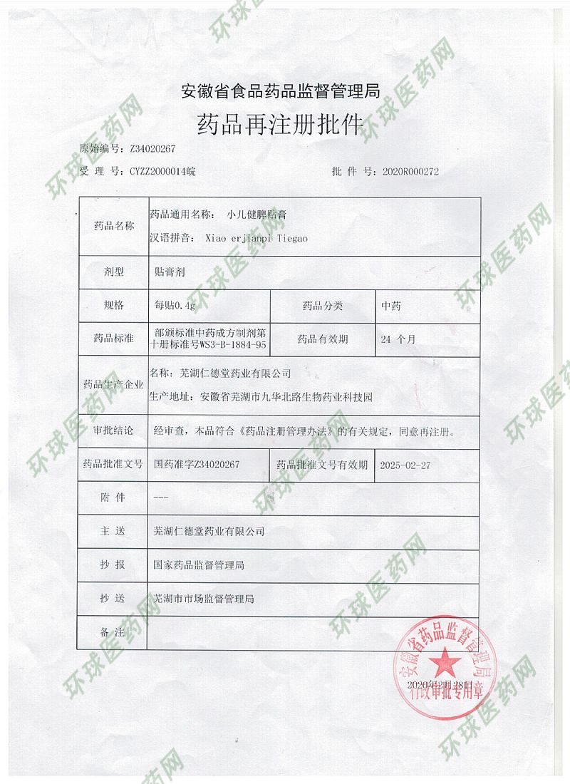 生產(chǎn)企業(yè): 蕪湖仁德堂藥業(yè)有限公司
