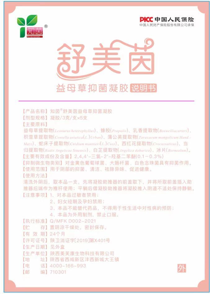 | 產(chǎn)品名稱 | 知茵®;舒美茵益母草婦科凝膠 |
