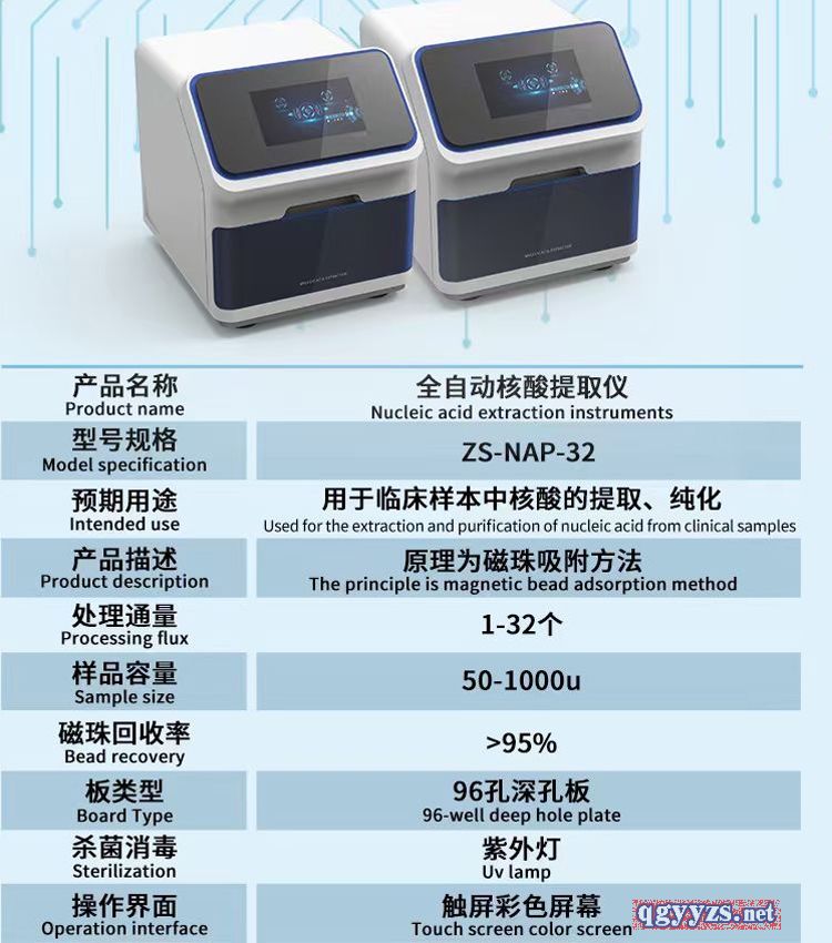 | 使用方法 | 核酸提取儀配合對(duì)應(yīng)的磁珠法試劑盒完成從微生物,動(dòng)植物,病毒中DNA/RNA的提取純化,蛋白質(zhì)或多肽片段的提純,特定的細(xì)菌、細(xì)胞和各種腫瘤標(biāo)志物等的分離富集。 |