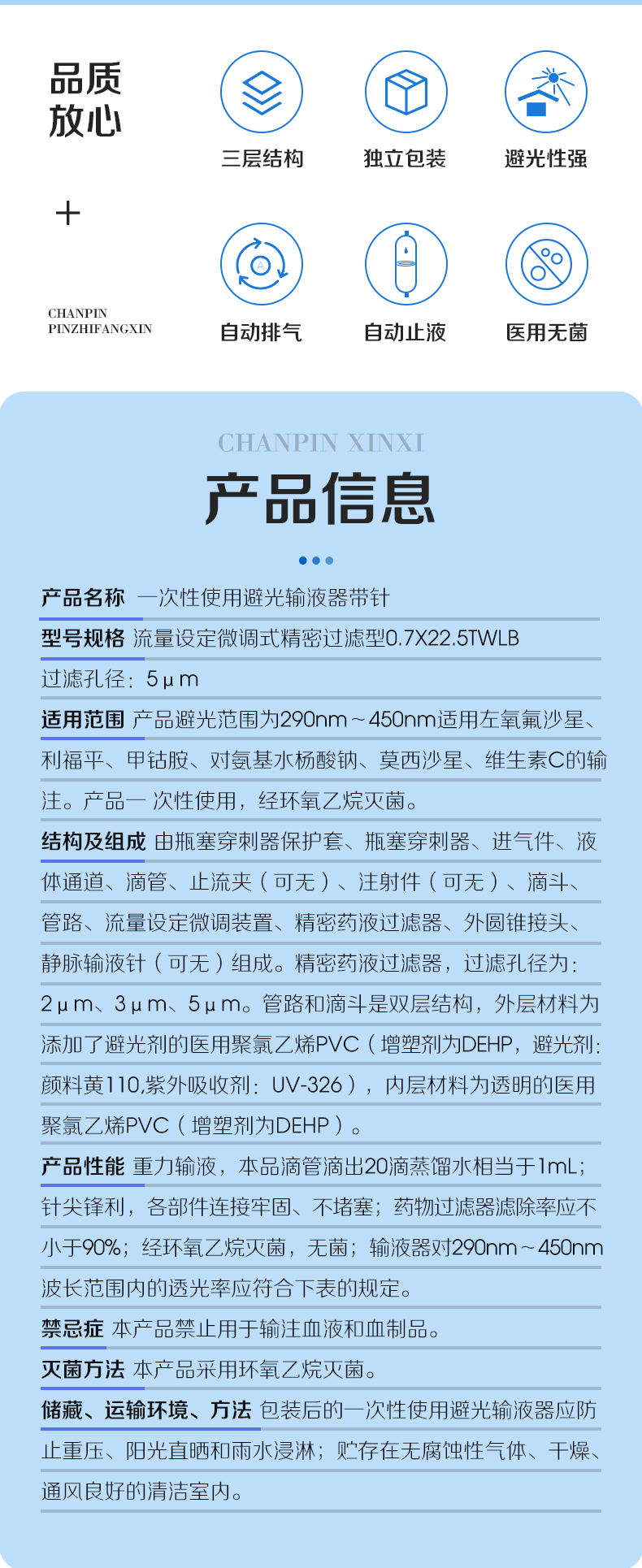 產(chǎn)品名稱: 一次性使用避光輸液器帶針
