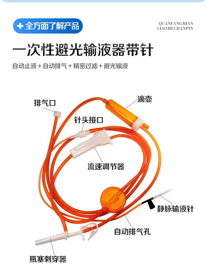 | 產(chǎn)品名稱 | 一次性使用避光輸液器帶針 |