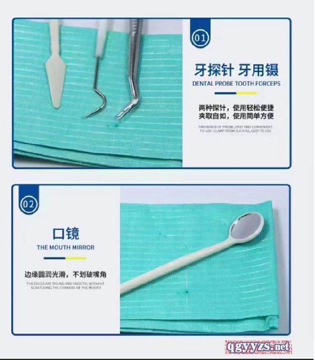 | 產(chǎn)品規(guī)格 | ZS-1:托盤、口鏡、牙探針、牙用鑷; ZS-2:托盤、口鏡、牙探針、牙用鑷、脫脂棉球等 |