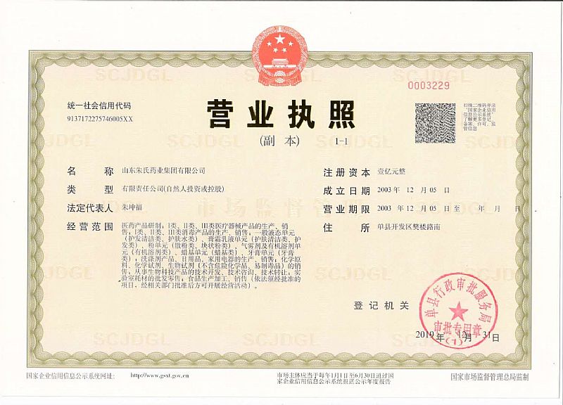 生產(chǎn)企業(yè): 山東朱氏藥業(yè)集團有限公司