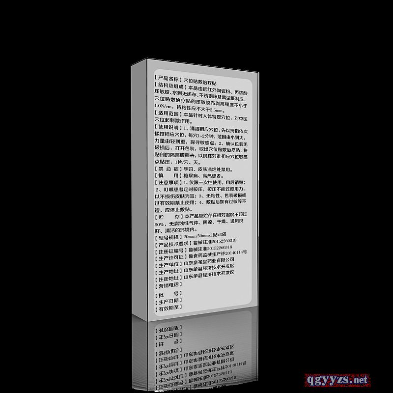 | 使用方法 | 清潔相應(yīng)穴位,打開包裝,取出穴位貼敷治療貼,將貼劑的隔離膜撕去,以鋼珠對準相應(yīng)穴位敏感點貼壓,1片/穴、天。 |