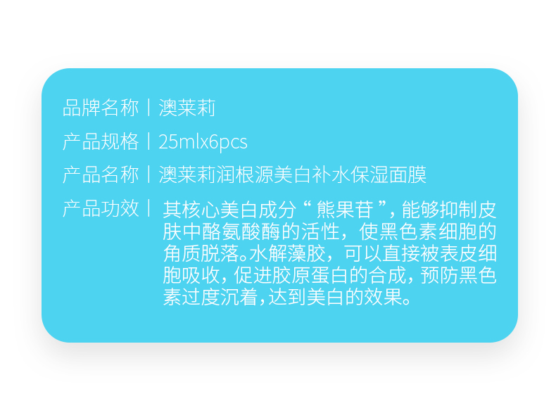 產(chǎn)品名稱: 澳萊莉潤(rùn)根源美白補(bǔ)水保濕面膜