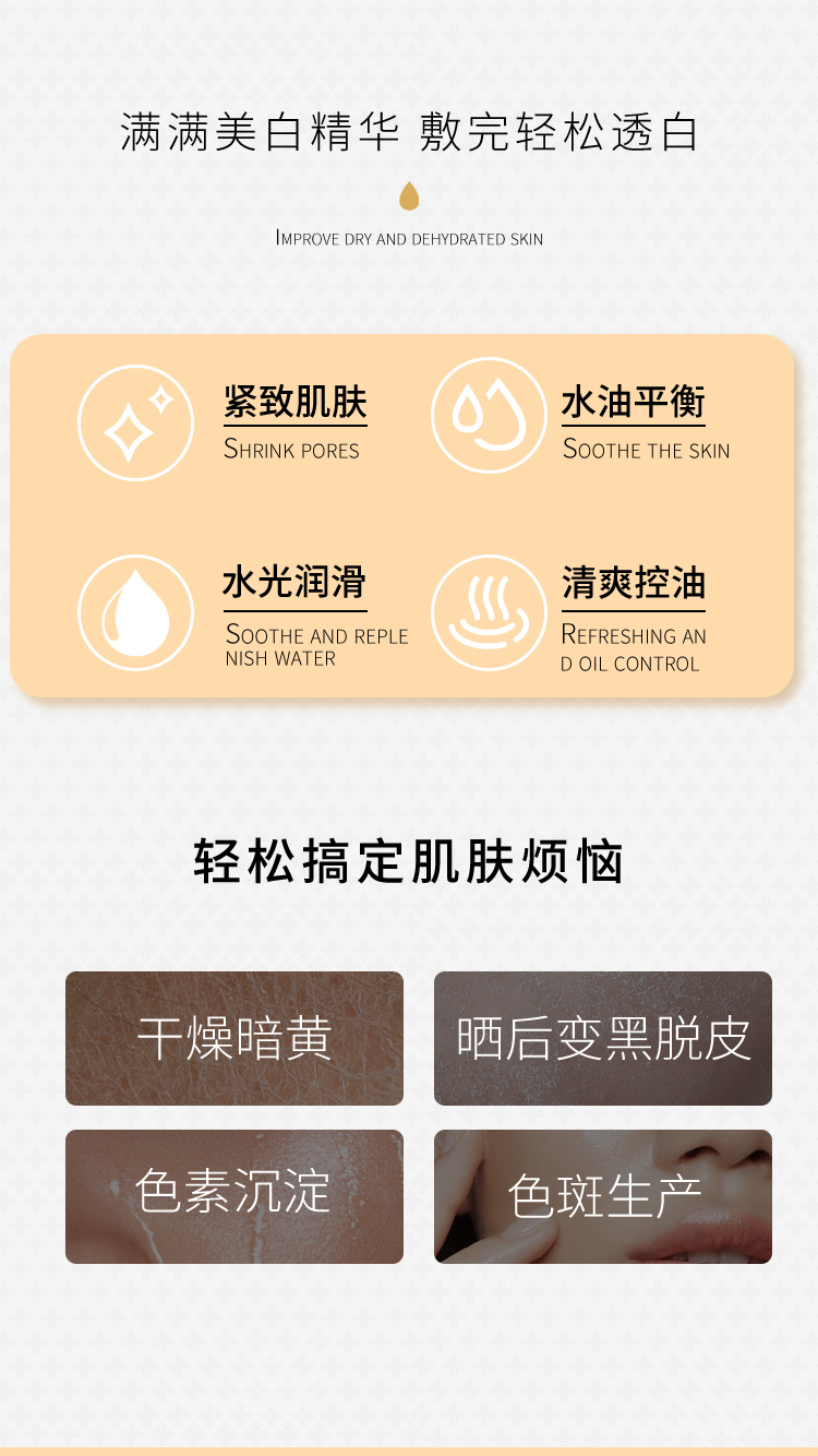 | 產品用途 | 美白淡斑、補水保濕、舒緩肌膚 |