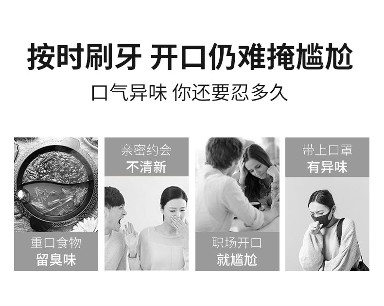 | 主要成分 | 薄荷提取液、甘草提取液、藿香提取液、丁香提取液、金銀花提取液、綠茶提取液、檸檬提取液、雪菊提取液、蜂膠、檸檬酸、山梨酸鉀、甘油、冰片、益生菌粉、木糖醇、葡萄糖酸氯己定、純化水。 |