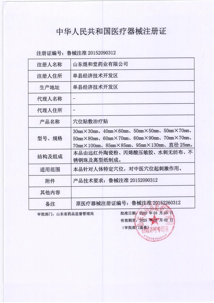 | 產(chǎn)品賣點(diǎn) | 本品由遠(yuǎn)紅外陶瓷粉、丙烯酸壓敏膠、水刺無(wú)紡布、不銹鋼珠及離型紙制成。穴位貼敷治療貼的壓敏膠布剝離強(qiáng)度不小于1.0N/cm,持粘性應(yīng)不大于2.5mm。遠(yuǎn)紅外發(fā)射波長(zhǎng)范圍8μm-15μ |