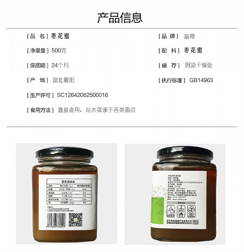 產(chǎn)品名稱: 蕊得蜂蜜自然成熟棗花蜂蜜