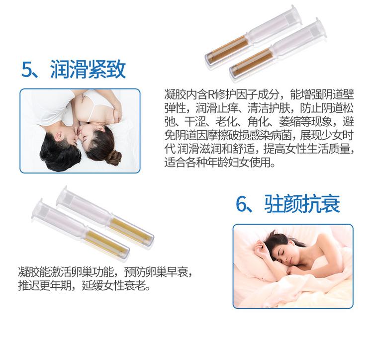| 使用方法 | 晚上睡前清洗外陰后,打開包裝、取出產品,拔掉無菌頂蓋、取下蓋帽,用蓋帽封閉端推入輸送器腔,推出少許凝膠,自然平臥位。膝蓋彎曲,將推進器插入陰道深處推出凝膠覆蓋在宮頸口周圍或穹窿處,抽出輸送器棄之。1支/次,1次/日,嚴重者2支/日,早晚各一支或者遵醫(yī)囑。6支為一個療程,一般1到2個療程創(chuàng)面修復。 |