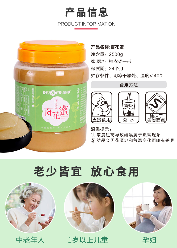 | 產(chǎn)品名稱 | 蕊得蜂蜜活性原蜜神農(nóng)架結(jié)晶百花蜜2500克 |