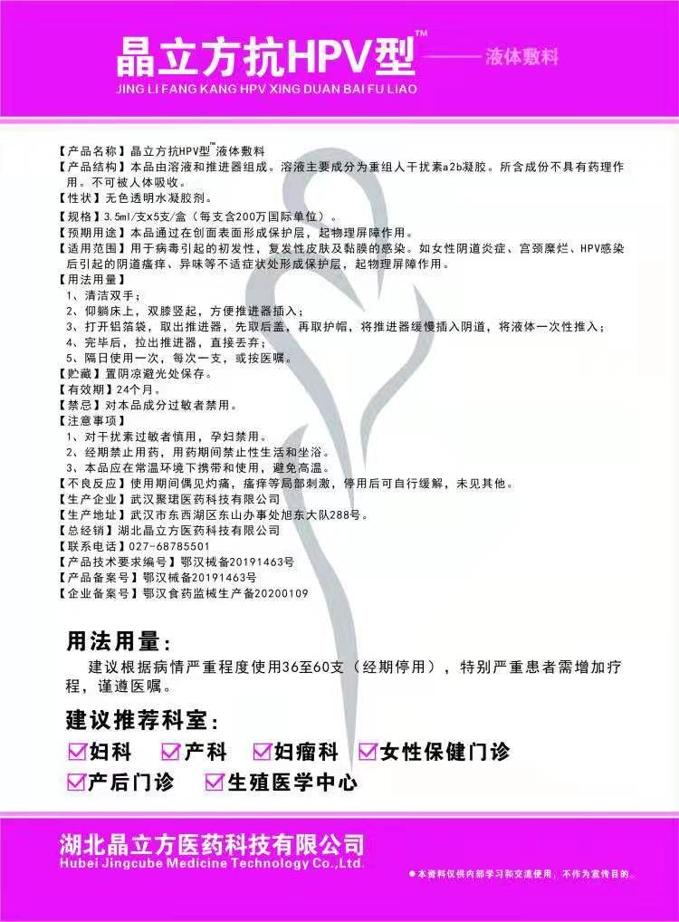 產(chǎn)品名稱: 晶立方抗HPV型液體敷料