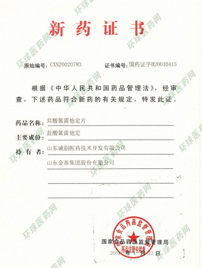 本品的主要成份為鹽酸氯雷他定。 |
