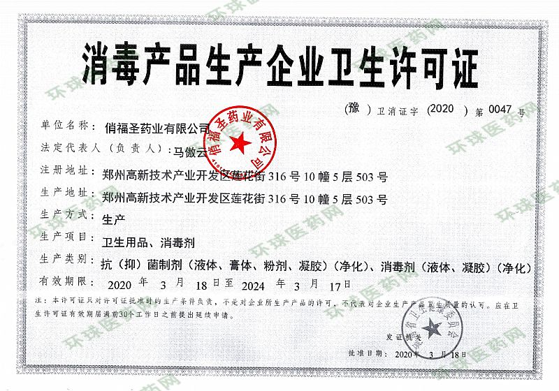 批準(zhǔn)文號: 豫衛(wèi)消證字【2020】第【0047】號