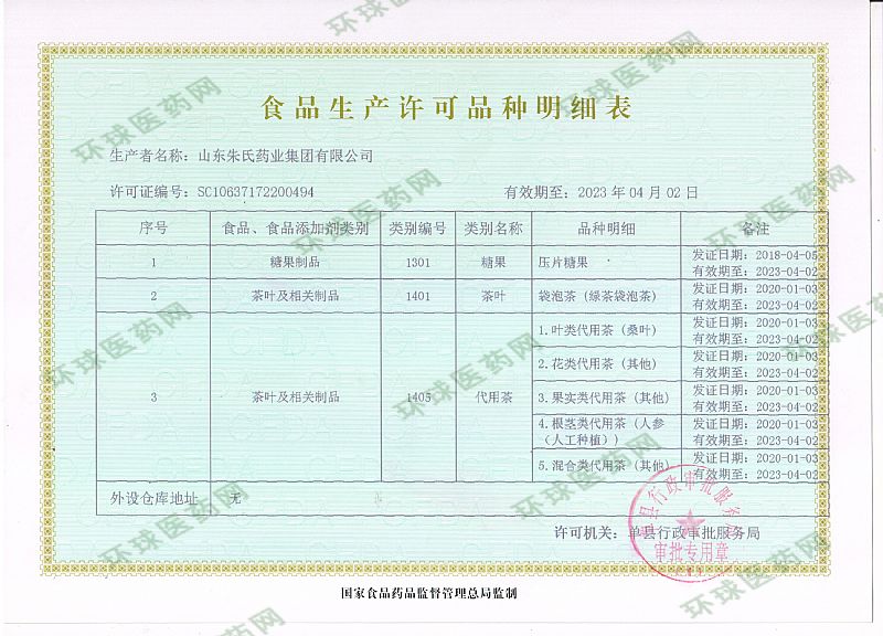 生產(chǎn)企業(yè): 山東朱氏藥業(yè)集團有限公司