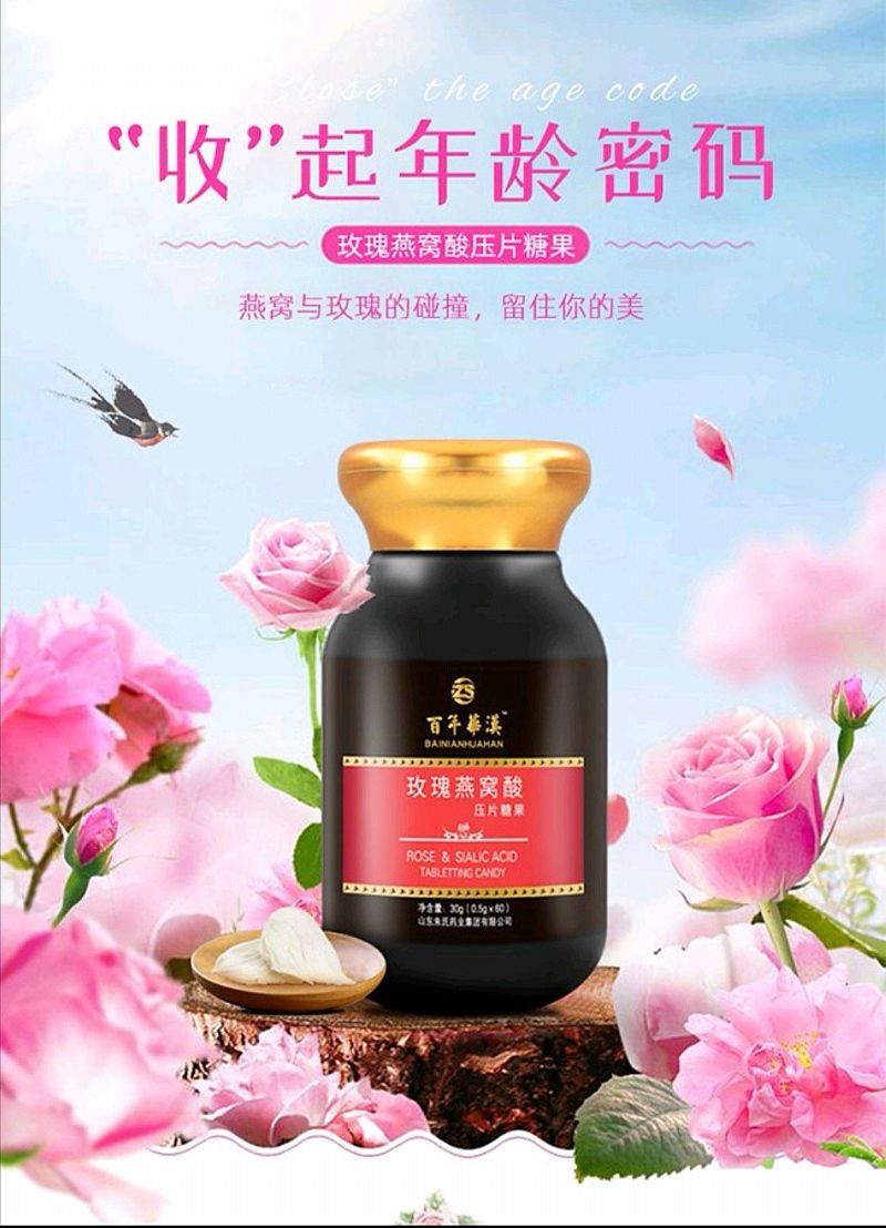 產(chǎn)品名稱: 百年華漢玫瑰燕窩酸高濃縮壓片糖果