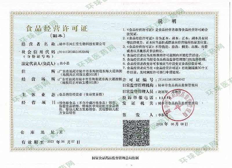 生產(chǎn)企業(yè): 陸豐市鳳仁堂生物科技有限公司