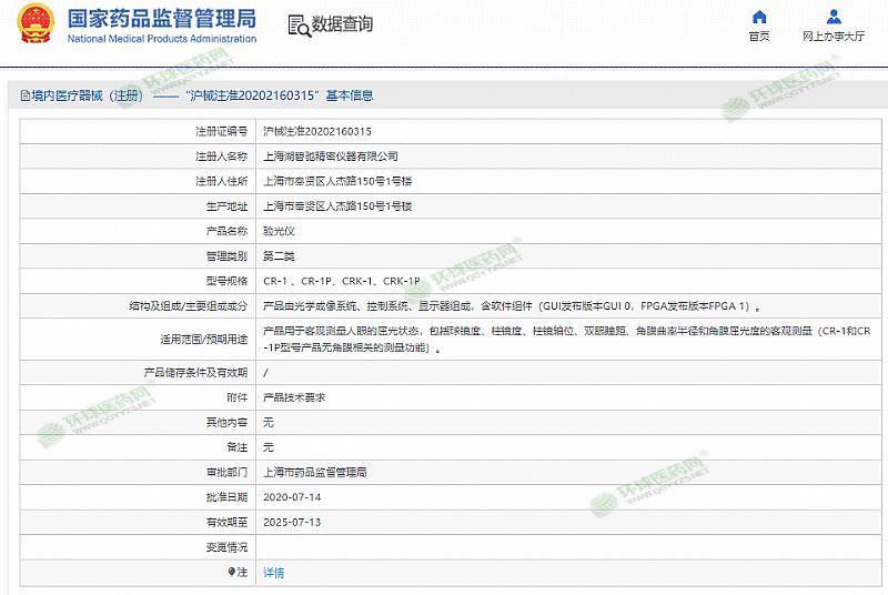 批準(zhǔn)文號: 滬械注準(zhǔn)20202160315 【驗證真?zhèn)?/a>】