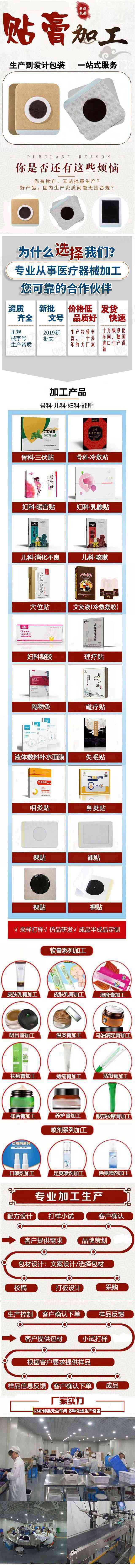 | 其它說明 | 膏藥生產(chǎn)銷售基地,承接各大品牌,企業(yè),團(tuán)隊(duì)及個(gè)人的貼牌,私人訂制,代加工生產(chǎn),有意向的領(lǐng)導(dǎo),可來公司產(chǎn)業(yè)園區(qū)實(shí)地考察,期待您的光臨 |