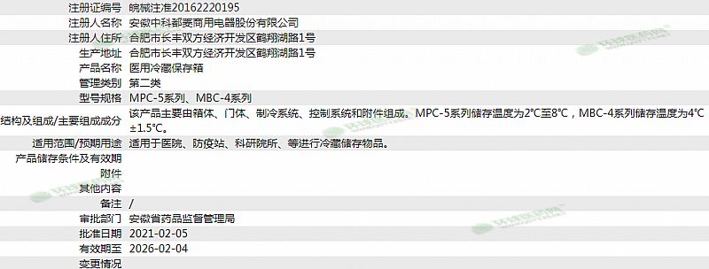 生產(chǎn)企業(yè): 安徽中科都菱商用電器股份有限公司