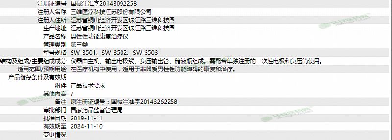 生產(chǎn)企業(yè): 三維醫(yī)療科技江蘇股份有限公司