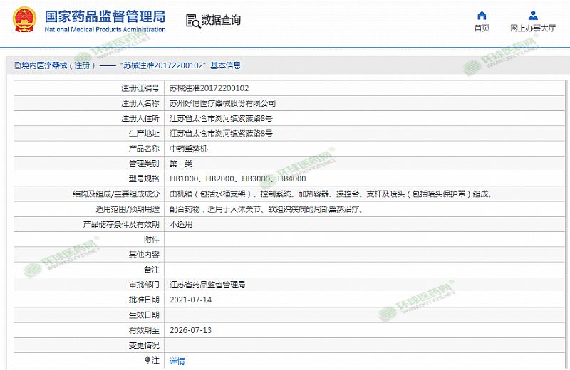批準(zhǔn)文號(hào): 蘇械注準(zhǔn)20172200102 【驗(yàn)證真?zhèn)?/a>】