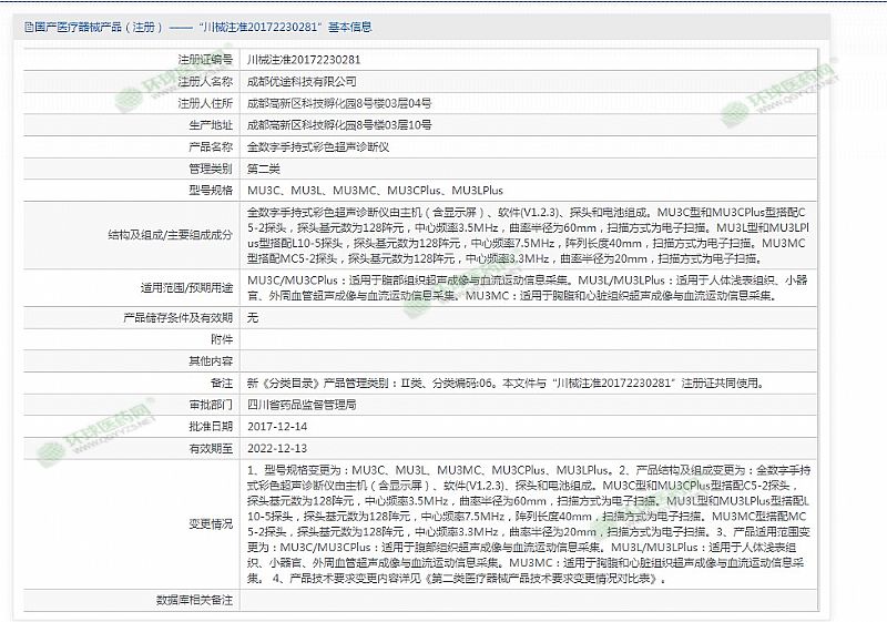 | 產(chǎn)品用途 | MU3C/MU3CPlus:適用于腹部組織超聲成像與血流運動信息采集。MU3L/MU3LPlus:適用于人體淺表組織、小器官、外周血管超聲成像與血流運動信息采集。MU3MC:適用于胸腹和心臟組織超聲成像與血流運動信息采集。 |