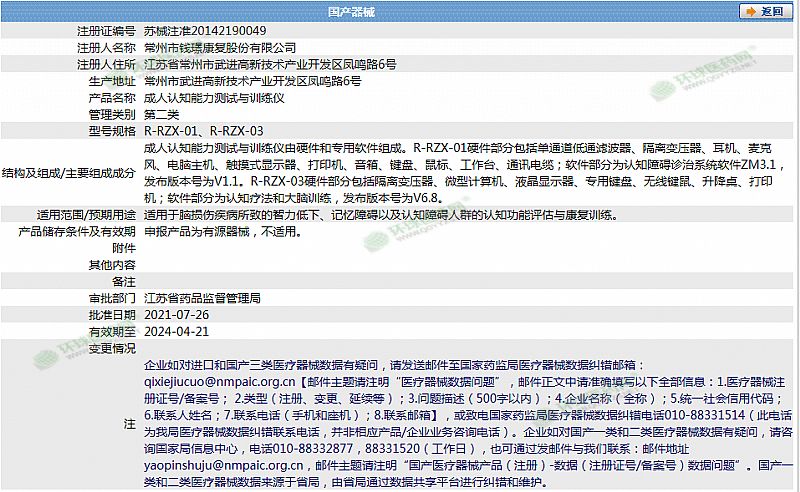 | 產(chǎn)品用途 | 適用范圍/預(yù)期用途 適用于腦損傷疾病所致的智力低下、記憶障礙以及認(rèn)知障礙人群的認(rèn)知功能評(píng)估與康復(fù)訓(xùn)練。 |